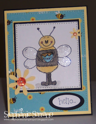 Hello, Happy Saturday to you, glad you stopped by for a visit. This is for today's sketch over at Sweet Stop Sketches. I decided to use this cute digi image from Sweet 'n Sassy stamps, isn't he just the cutest? I needed a bright cheery card after this past week of COLD weather and I thought he was just perfect! I hope you find time to play along with us this week!
