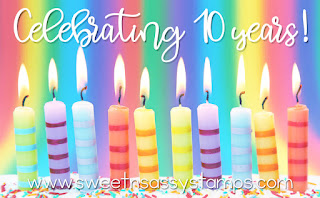 Sweet 'n Sassy Stamps is celebrating 10 years of being in business and feeling so blessed. We are having a month long celebration. For every order of $50 or more you will receive the So Happy stamp set which I will post below. There will be a giveaway each Friday on FB and Instagram so make sure you follow us there. One lucky customer will win a free stamp set a month for a whole year! Every time you make a purchase during the month of November you will receive a chance to win. You can read all about the month of surprises HERE.