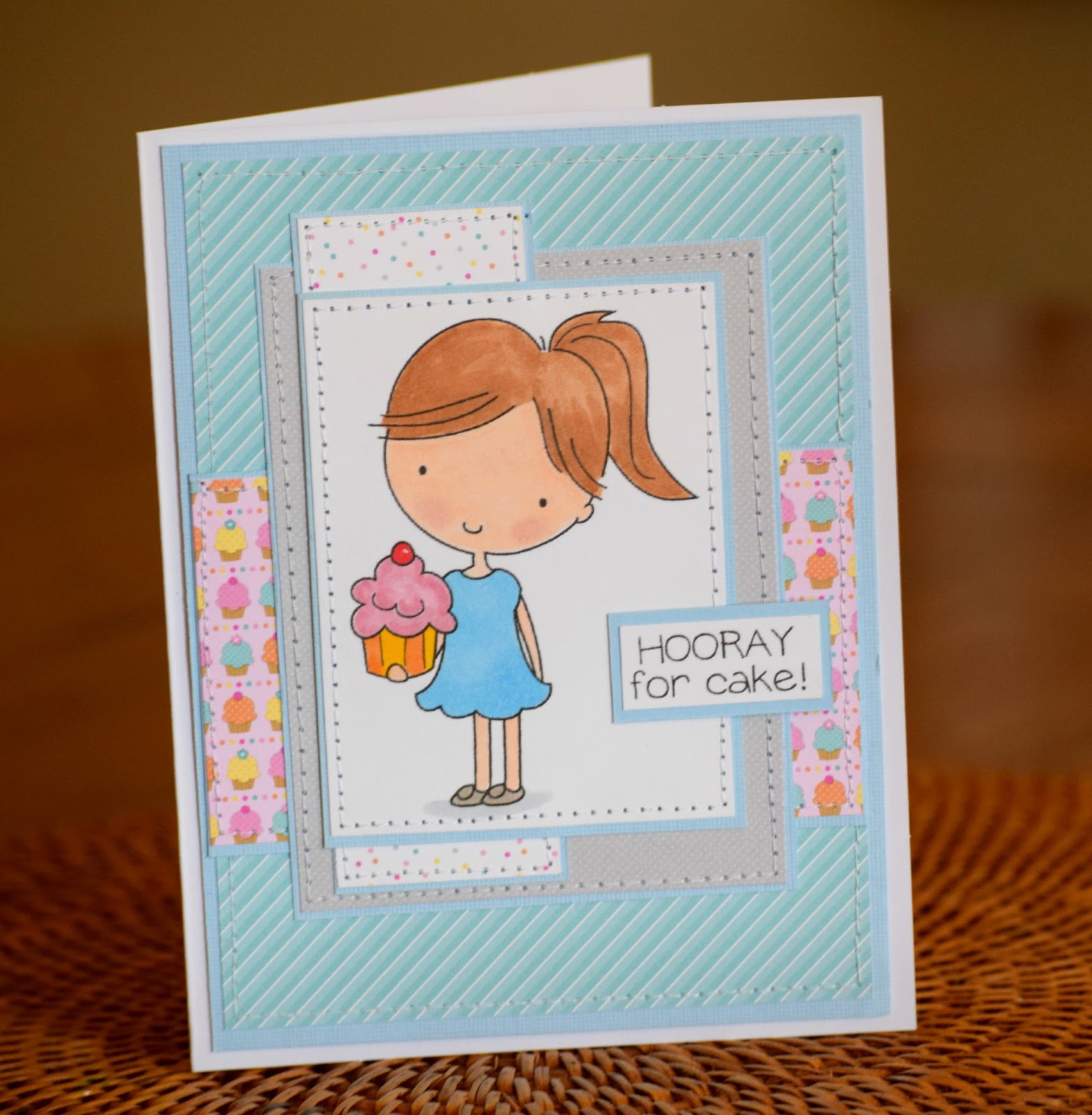 My third card today is for the Viva La Verve Challenge using this cute little image from Digi Stamp Boutique. I colored with copics and the paper is from my scrap bin.
